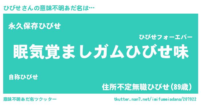 | ヘコむあだ名 | 『ひびせ(爆)』『レバニラ』『ひびを』 |