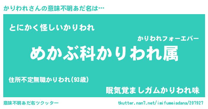 | 男性向けラノベタイトル風あだ名 | 『カリワレスレイヤー』 |
