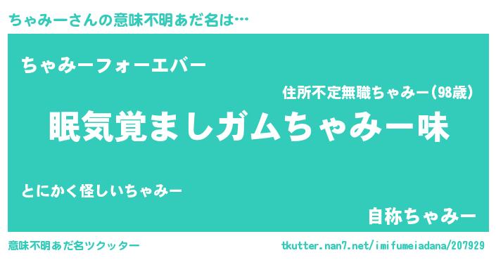 | ヒーロー風カッコイイあだ名 | 『愛の使者ちゃみー』『最強戦士チャミー』 |