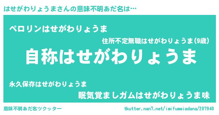 | 女子向けラノベタイトル風あだ名 | 『はせがわりょうまストレイドッグス』 |