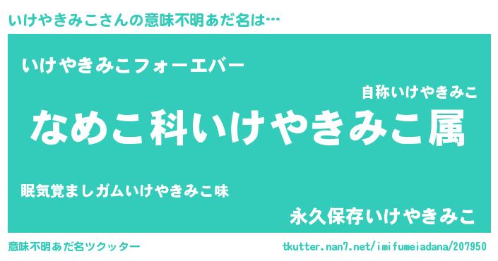| 料理風あだ名 | 『いけやきみこの炊き込みご飯』 |