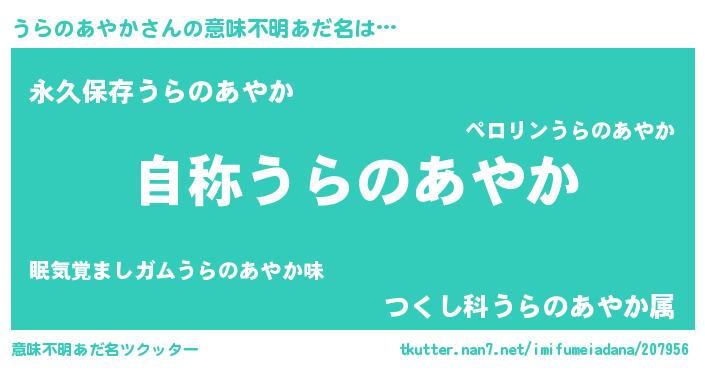 | ヘコむあだ名 | 『うらのあやか(小並感)』『うらにー』 |
