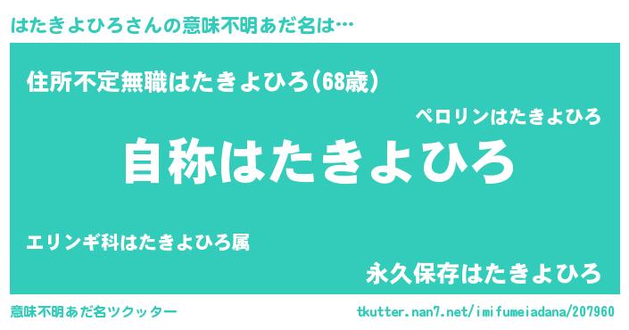 | 伝説のあだ名 | 『聞きしに勝る勇者はたきよひろ』 |