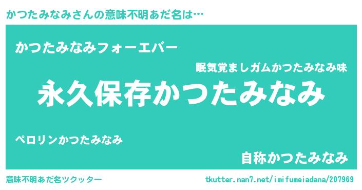 | ヘコむあだ名 | 『かつたみなみ(遠い目)』『つくし』 |