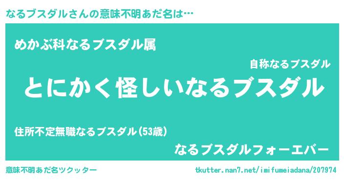 | 胡散臭い通販商品みたいなあだ名 | 『信頼と実績のペンダント…その名も「なるブスダル」』 |