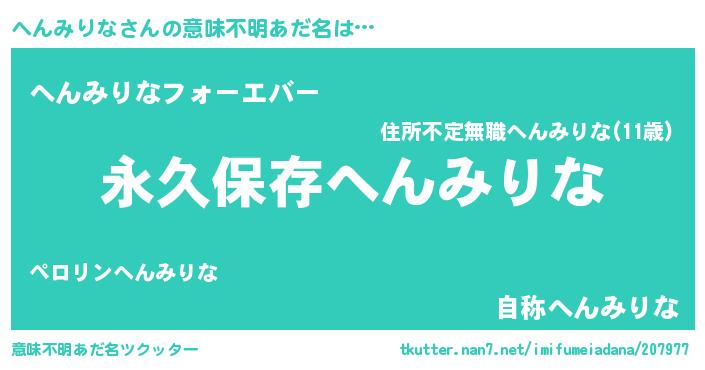| ヒーロー風カッコイイあだ名 | 『ネオヘンミリナ』『仮面ヘンダー』 |