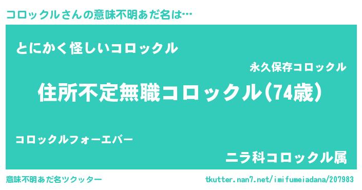 | 男性向けラノベタイトル風あだ名 | 『この素晴らしい世界にコロックルを!』 |