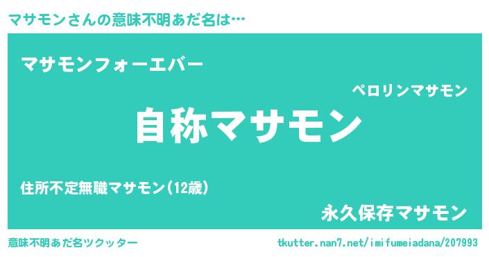 | ファンタジー風あだ名 | 『ゼマサトゥ』『エターナルマサモンー』 |