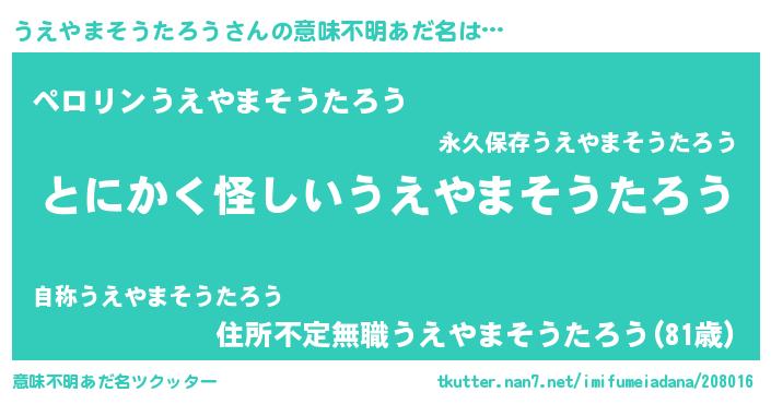 | 料理風あだ名 | 『うえやまそうたろうの豆乳スープ』 |