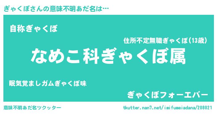 | ヒーロー風カッコイイあだ名 | 『サイバー戦士ギャクボ』『仮面ギャダー』 |