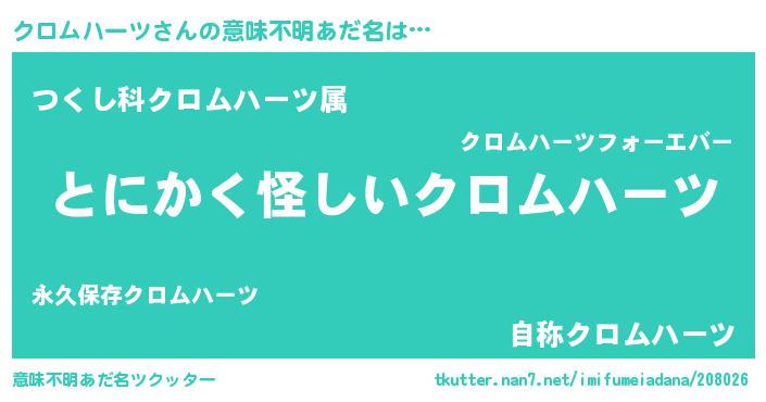 | ポケモン風あだ名 | 『ヒクロムハーツ』『クロキング』 |
