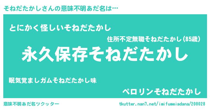| ヘコむあだ名 | 『そねだたかし(震え声)』『そね太郎』 |