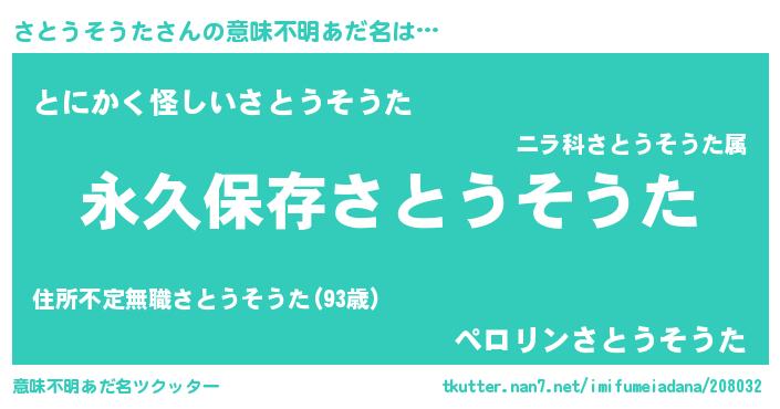 | 胡散臭い通販商品みたいなあだ名 | 『来世でも幸せになれる健康食品…その名も「さとうそうた」』 |