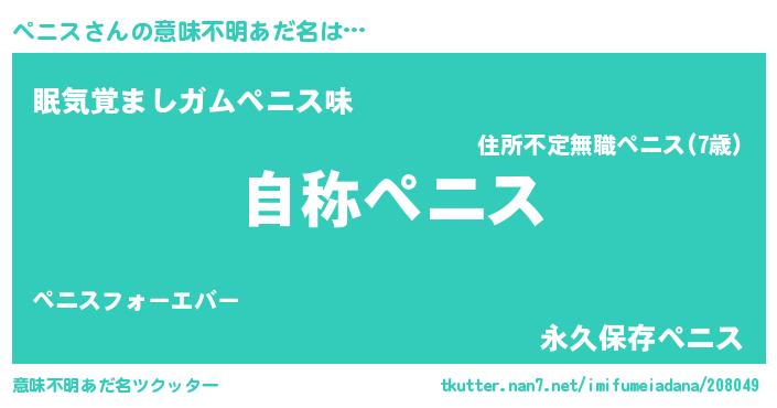 | ヒーロー風カッコイイあだ名 | 『超時空戦士ペニス』『友情の使者ペニス』 |