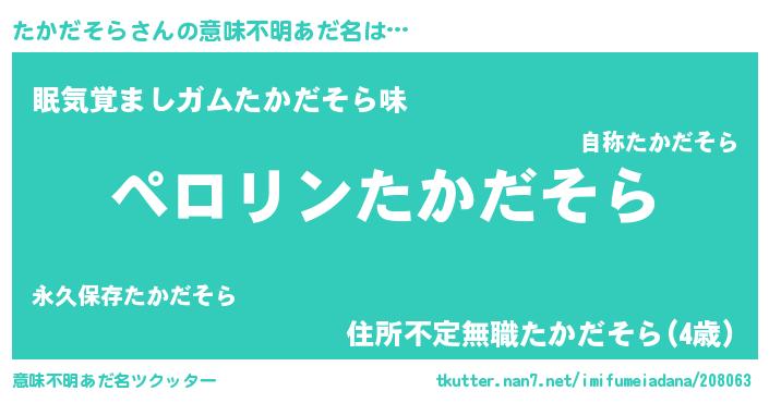 | 胡散臭い通販商品みたいなあだ名 | 『必ず成功する霊験あらたかなお札…その名も「たかだそら」』 |