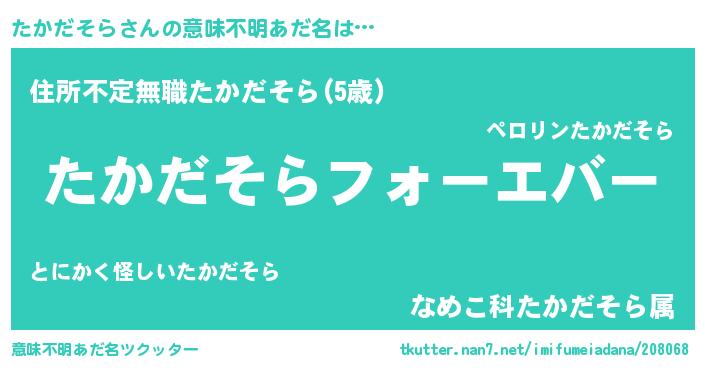| 肩書あだ名 | 『たかだそら総理大臣』『たかだそら教官』 |