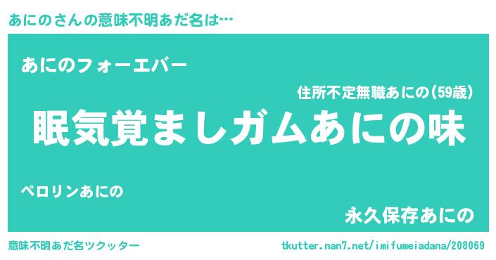 | ヒーロー風カッコイイあだ名 | 『慈愛の使者あにの』『ネオアニノ』 |