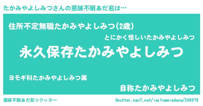 | ヘコむあだ名 | 『たかみやよしみつ(遠い目)』『たか太郎』 |