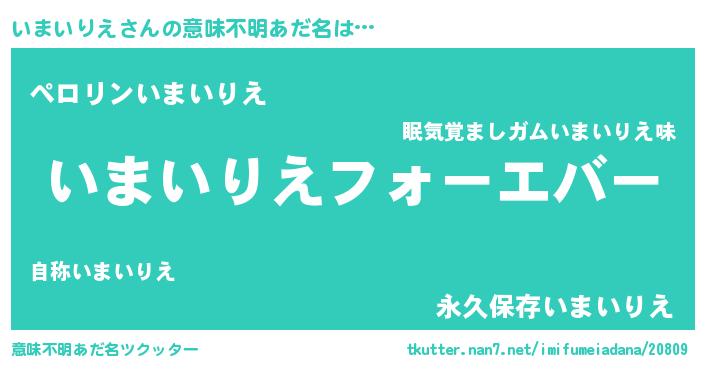 | 肩書あだ名 | 『いまいりえ国家主席』『いまいりえ助手』 |