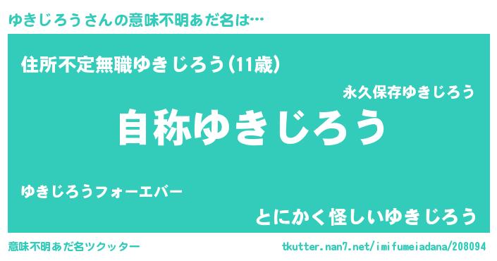 | 男性向けラノベタイトル風あだ名 | 『Re:ゆきじろうから始める異世界生活』 |