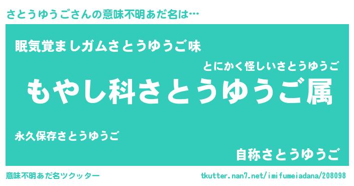 | ヒーロー風カッコイイあだ名 | 『愛の使者さとうゆうご』『天弓騎士サト』 |