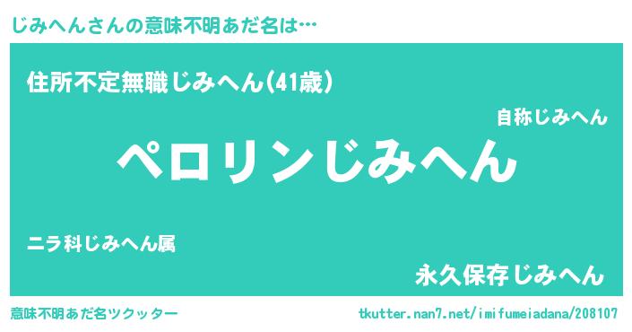 | ピコ太郎風あだ名 | 『ジコ二郎』『ピコジ郎』『ピジ一郎』 |