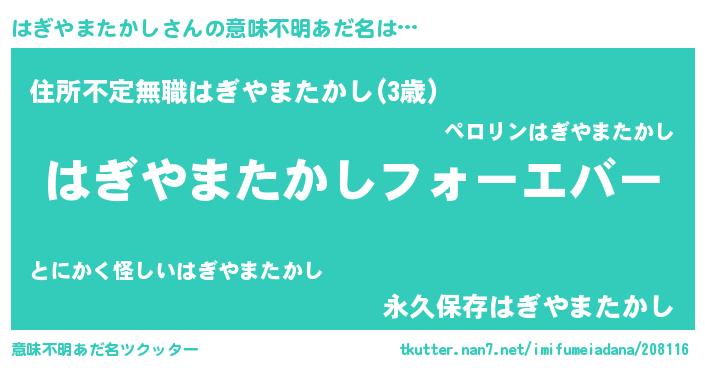 | 欧米人風あだ名 | 『はぎやまたかしクリステル』 |