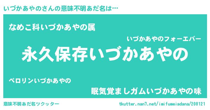 | 胡散臭い通販商品みたいなあだ名 | 『絶対に幸福をもたらす水素水…その名も「いづかあやの」』 |