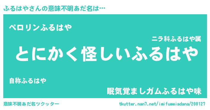 | 男性向けラノベタイトル風あだ名 | 『ふるはやの嫁は女の子じゃないと思った?』 |