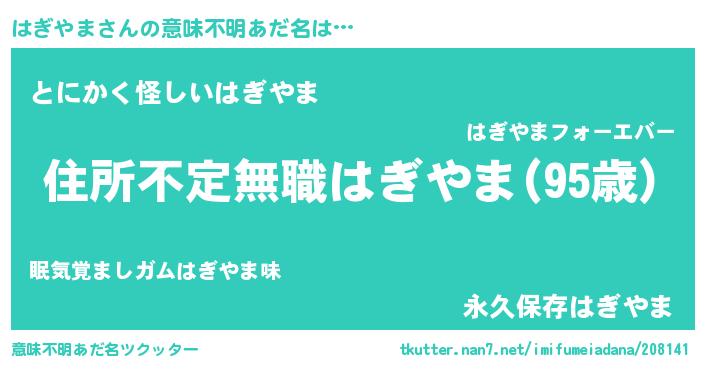 | ポケモン風あだ名 | 『ハーギイ』『ヒハギヤマ』 |