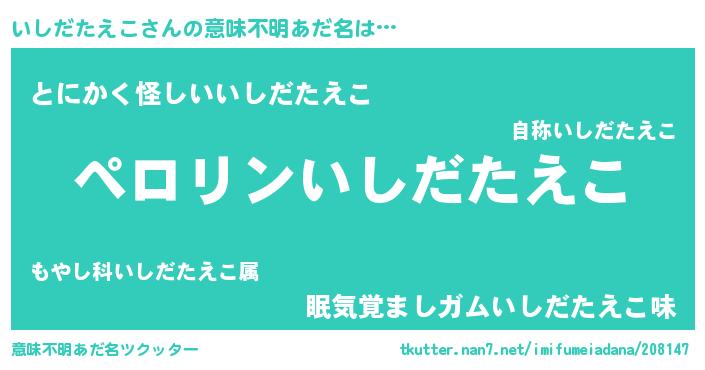 | ピコ太郎風あだ名 | 『イコ二郎』『イシ太郎』『イイ太郎』 |