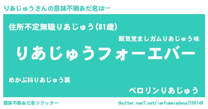 | 男性向けラノベタイトル風あだ名 | 『りあじゅうに滅ぼされるだけの簡単なお仕事です』 |