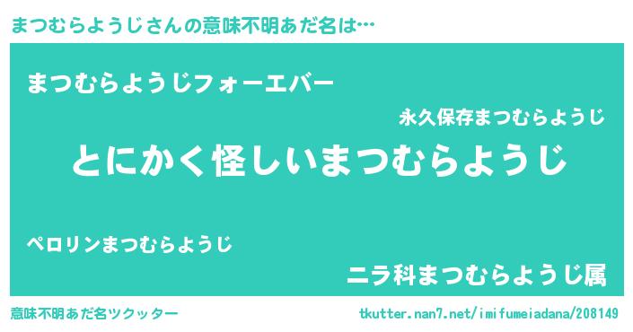 | 胡散臭い通販商品みたいなあだ名 | 『全米が絶賛したサプリメント…その名も「まつむらようじ」』 |