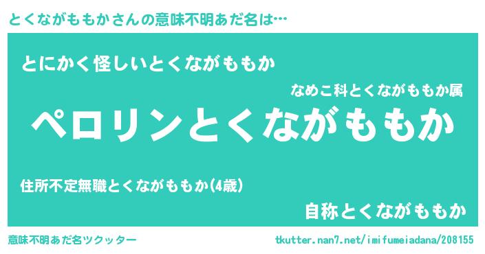| 胡散臭い通販商品みたいなあだ名 | 『モテモテ間違いなし霊験あらたかなお札…その名も「とくながももか」』 |