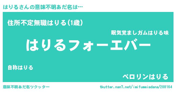 | ヒーロー風カッコイイあだ名 | 『ウルトラはりるマン』『仮面ハリダー』 |