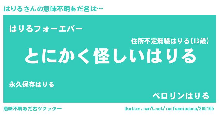| ヘコむあだ名 | 『はりぷりん』『牛乳』『はりにー』 |