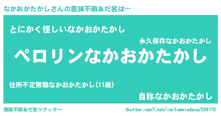 | ポケモン風あだ名 | 『ナカチュウ』『ヒナカオカタカシ』 |