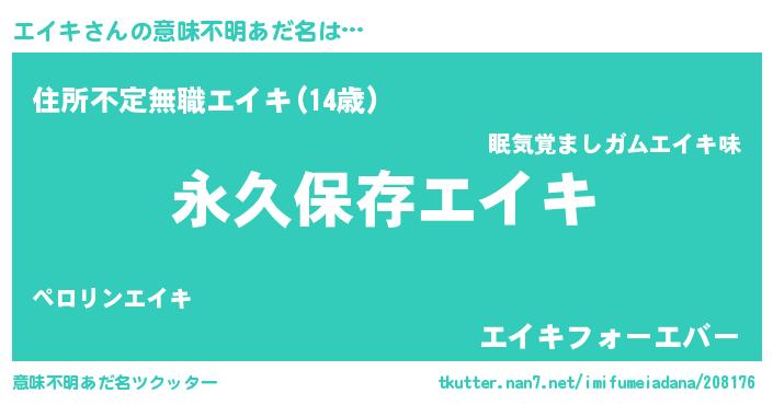 | 胡散臭い通販商品みたいなあだ名 | 『来世でも幸せになれる水素水…その名も「エイキ」』 |