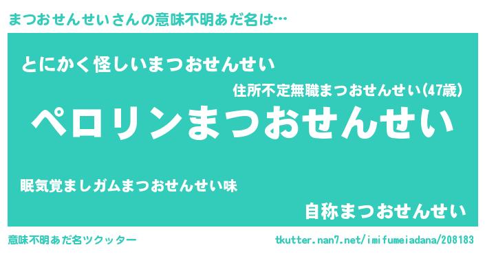 | 胡散臭い通販商品みたいなあだ名 | 『必ず成功する霊験あらたかなお札…その名も「まつおせんせい」』 |
