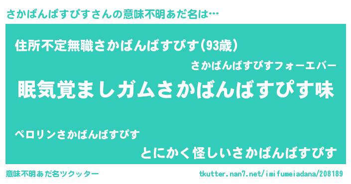 | ヒーロー風カッコイイあだ名 | 『慈愛の使者さかばんばすぴす』 |