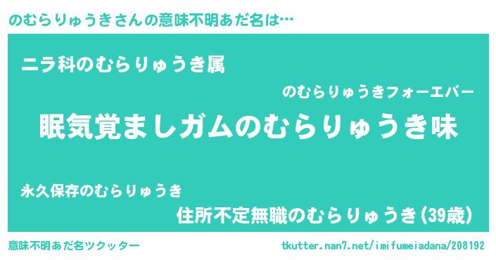 | 女子向けラノベタイトル風あだ名 | 『死神のむらりゅうきの再婚』 |