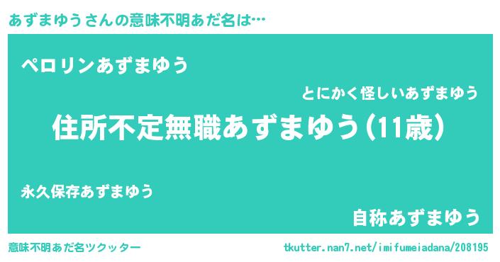 | ヒーロー風カッコイイあだ名 | 『仮面アズダー』『スーパーアズマユウ』 |