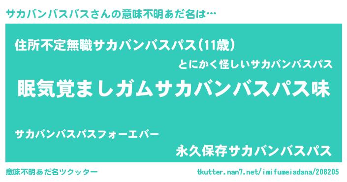 | 欧米人風あだ名 | 『ダニエルサカバンバスパス』 |