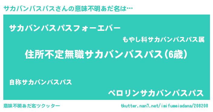 | ヒーロー風カッコイイあだ名 | 『仮面サカダー』『ネオサカバンバスパス』 |