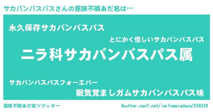 | 伝説のあだ名 | 『古文書に記された暗殺者サカバンバスパス』 |