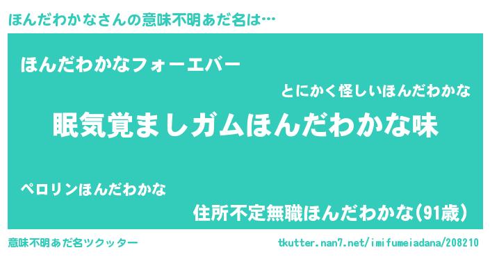 | 欧米人風あだ名 | 『ダニエルほんだわかな』 |