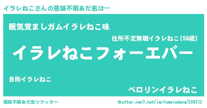 | ファンタジー風あだ名 | 『エターナルイラレネコー』『イラフェル』 |