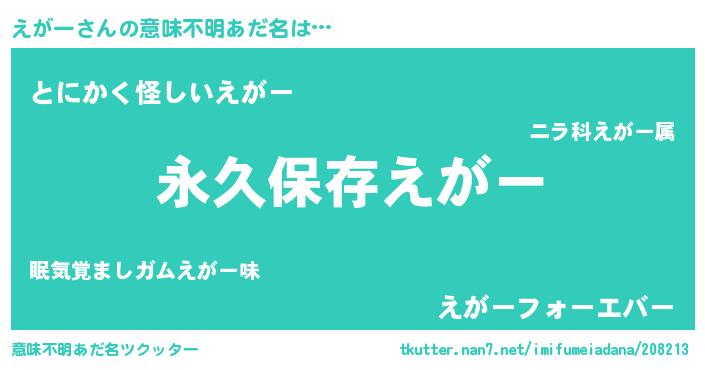 | ヘコむあだ名 | 『えがー(笑)』『えが太郎』『豆乳』 |