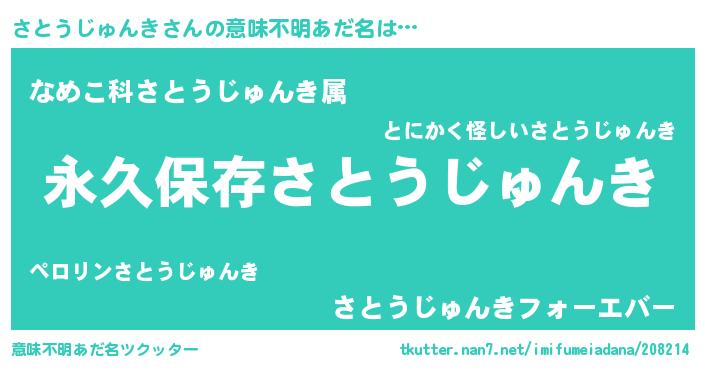 | 女子向けラノベタイトル風あだ名 | 『さとうじゅんきの契約王妃』 |