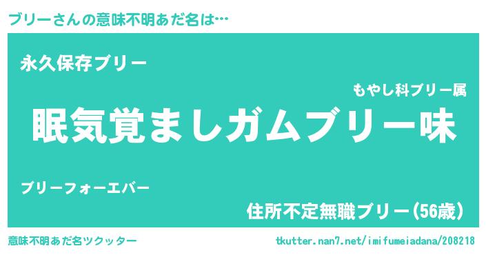 | ヘコむあだ名 | 『ブリー(震え声)』『酢こんぶ』 |